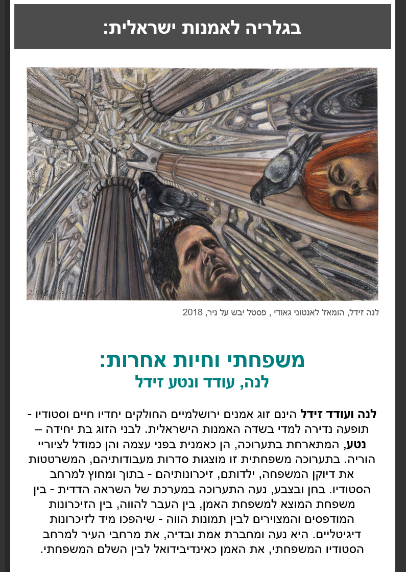 Curators: Ela Cohen Vansover, Dan Orimian. p. 39