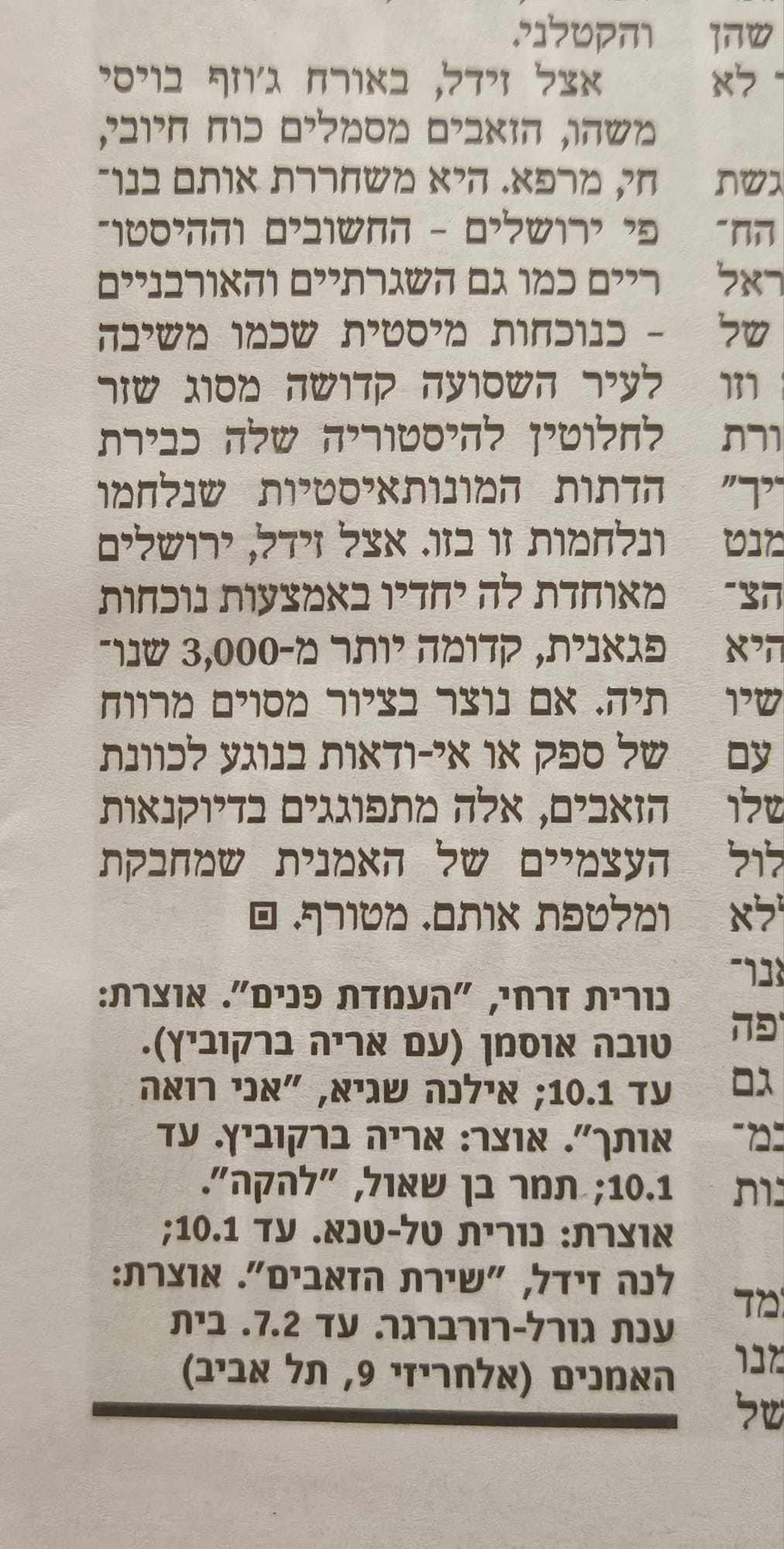 לנה זידל: החלום על מרסל יאנקו #1, הארץ, 9 במאי, 2024.